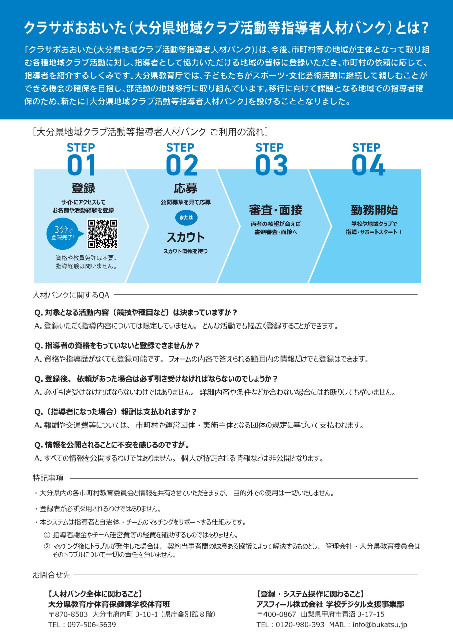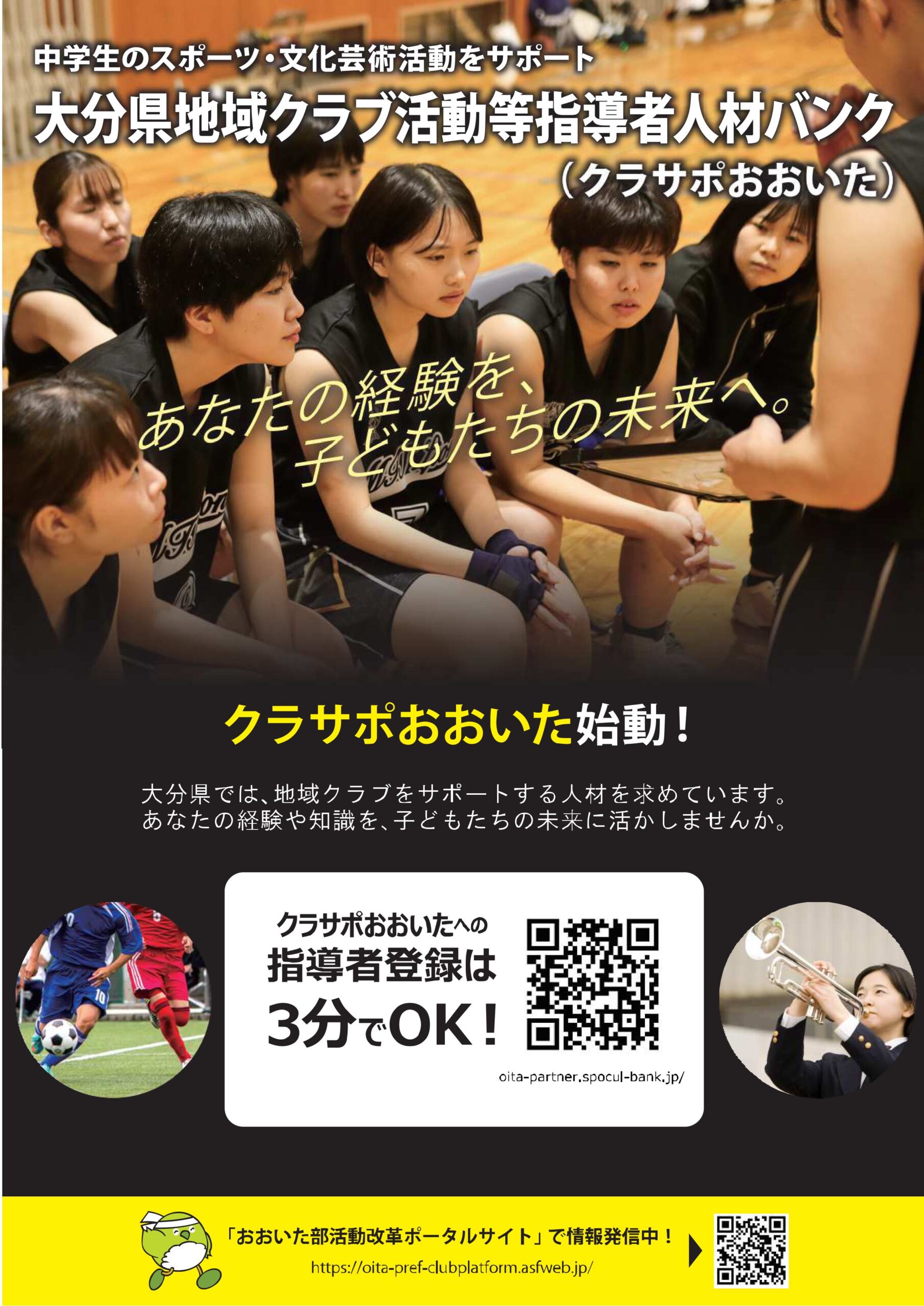 大分県サッカー協会技術委員会より『クラサポおおいた(指導者人材バンク) 』に関するお知らせです