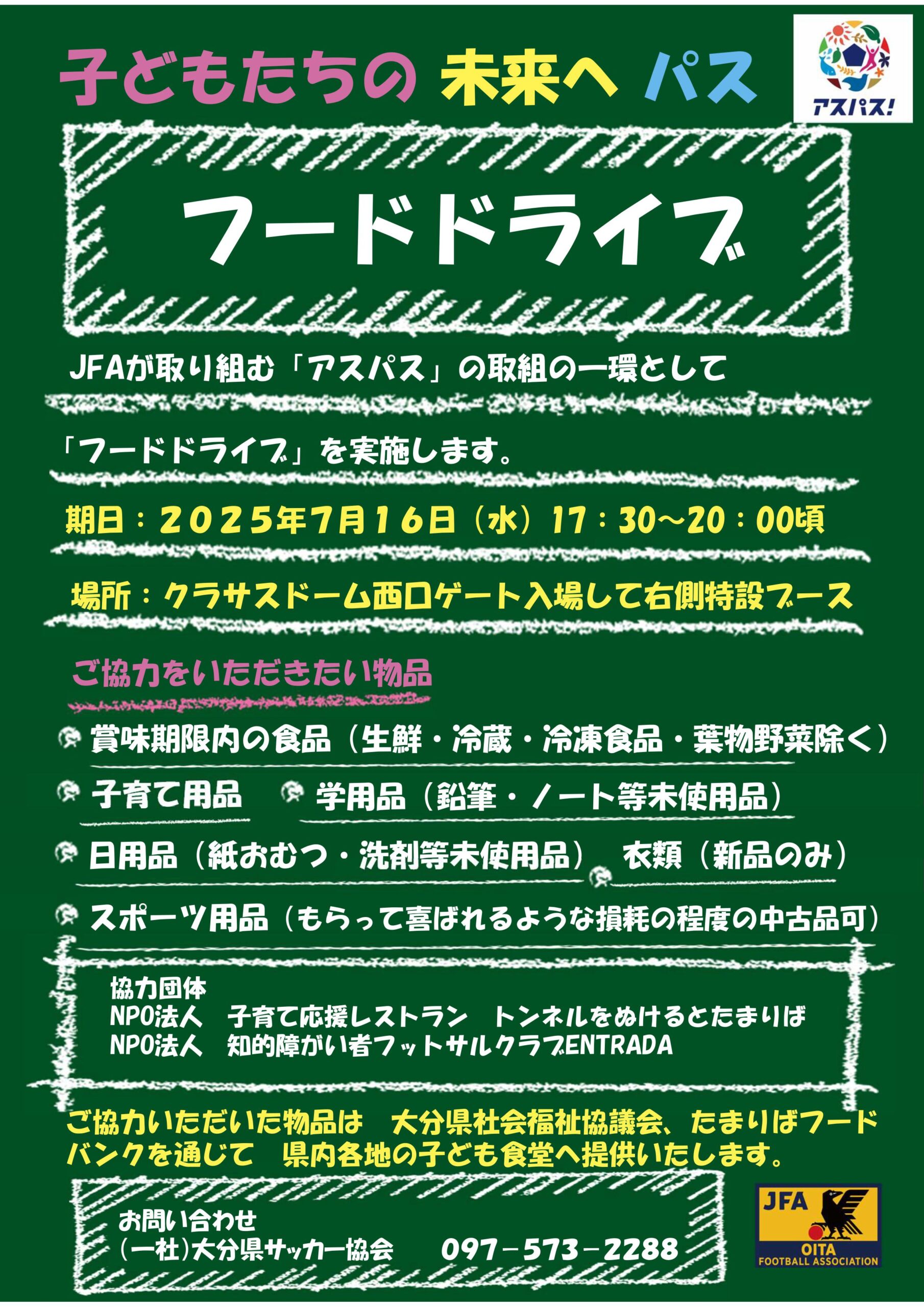 フードドライブ・募金活動(子ども食堂支援)実施のお知らせ(7月16日 天皇杯3回戦)