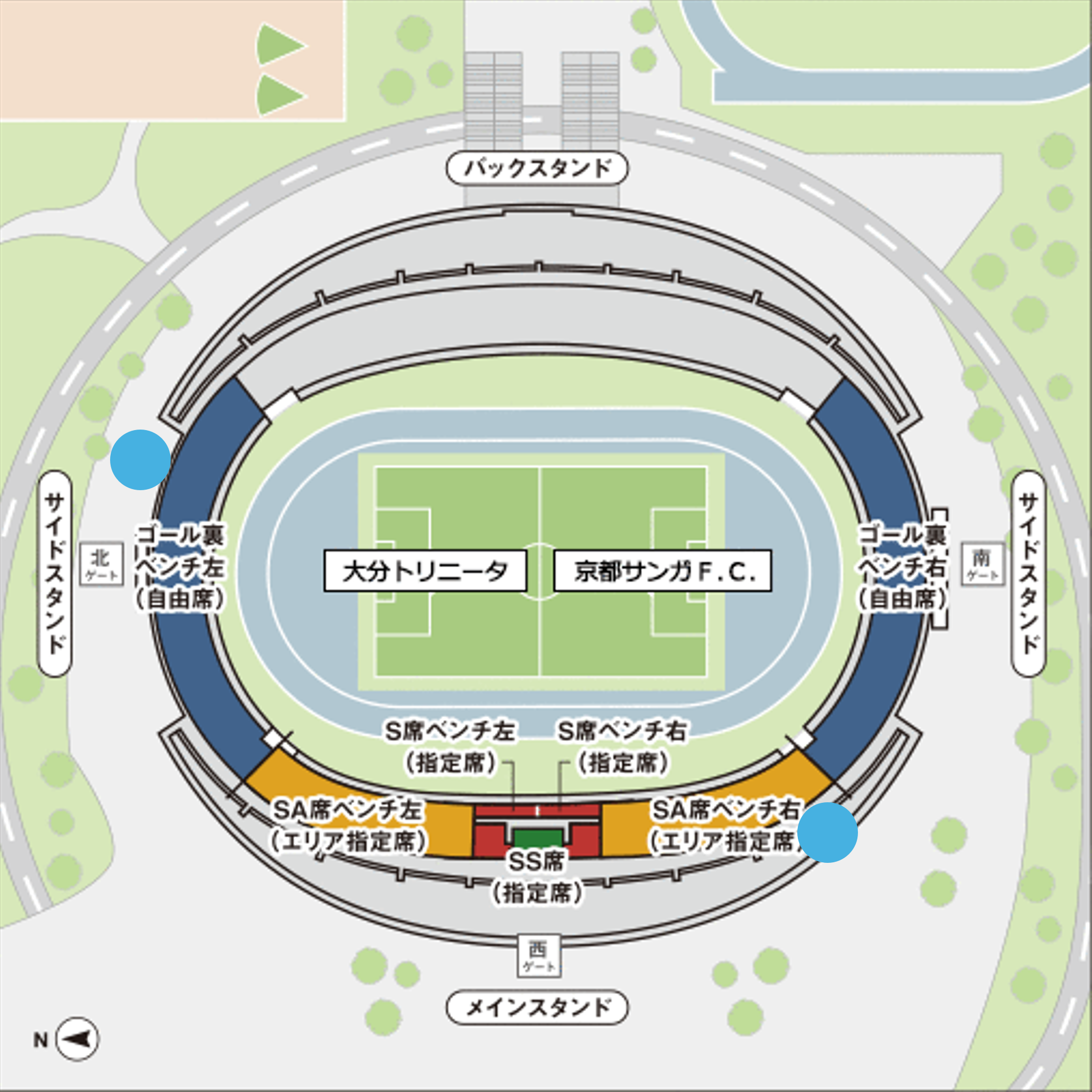 ■集合場所:北ゲート(大分トリニータ)・南ゲート(京都サンガF.C.)