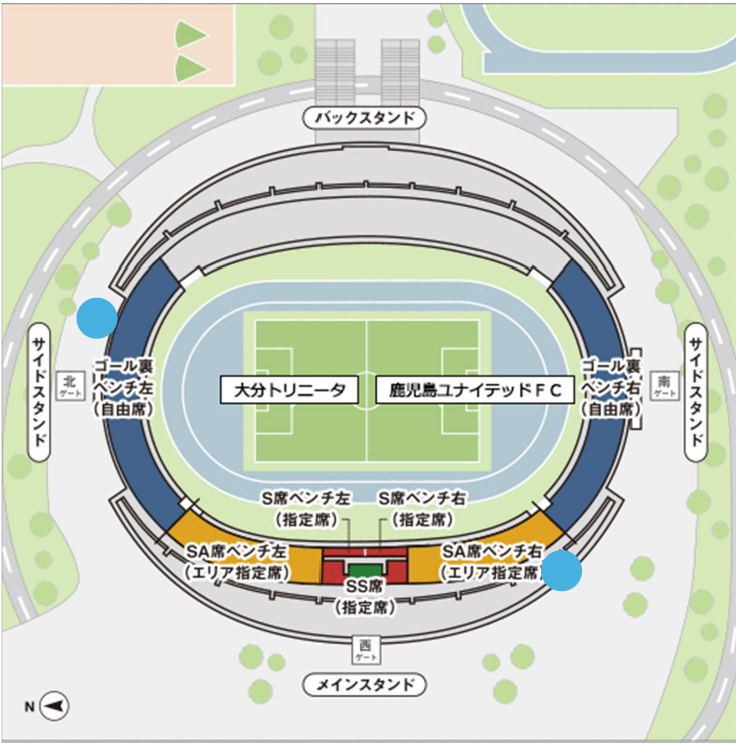 ■集合場所:北ゲート(大分トリニータ)・南ゲート(鹿児島ユナイテッドFC)